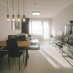 この寝室1室のアパートには設備の整った台所が備わります Grand Mall Varna Shuttleバス停は宿泊施設から歩いてたった10分の場所にあります。